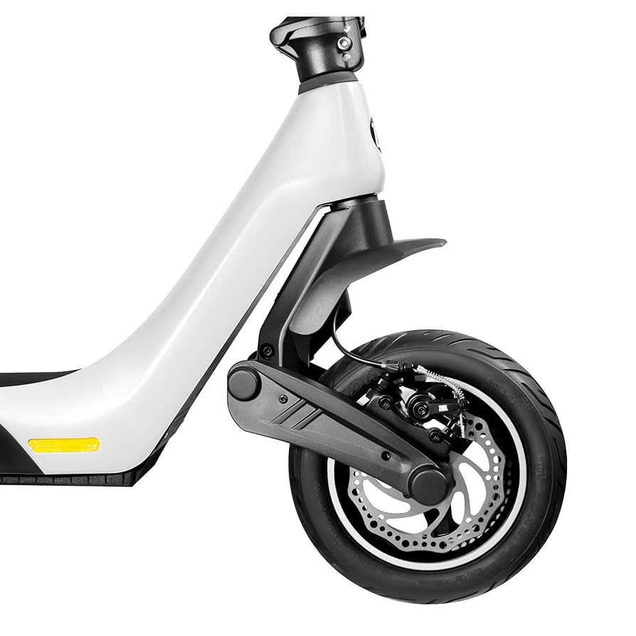 Aquí es donde el ZLion PRO empieza a separarse del montón. Un motor de 600W nominales que alcanza picos de 1200W no es moco de pavo. Esto se traduce en una aceleración potente y responsive, especialmente útil para reanudar la marcha tras un semáforo o para afrontar cuestas con una inclinación considerable. No se ahoga fácilmente. Pero si tuviera que quedarme con una característica de su rendimiento, sería sin duda el sistema de suspensión dual. Tanto la horquilla delantera DUO-SHOCK como la suspensión trasera trabajan en conjunto para absorber la brutalidad del asfalto en mal estado. Bordillos, adoquines, grietas… los traga con una fluidez que pocos patinetes en este rango ofrecen. La combinación con las ruedas tubeless de 10 pulgadas antipinchazos crea una experiencia de conducción suave y segura, reduciendo enormemente la fatiga en trayectos más largos.